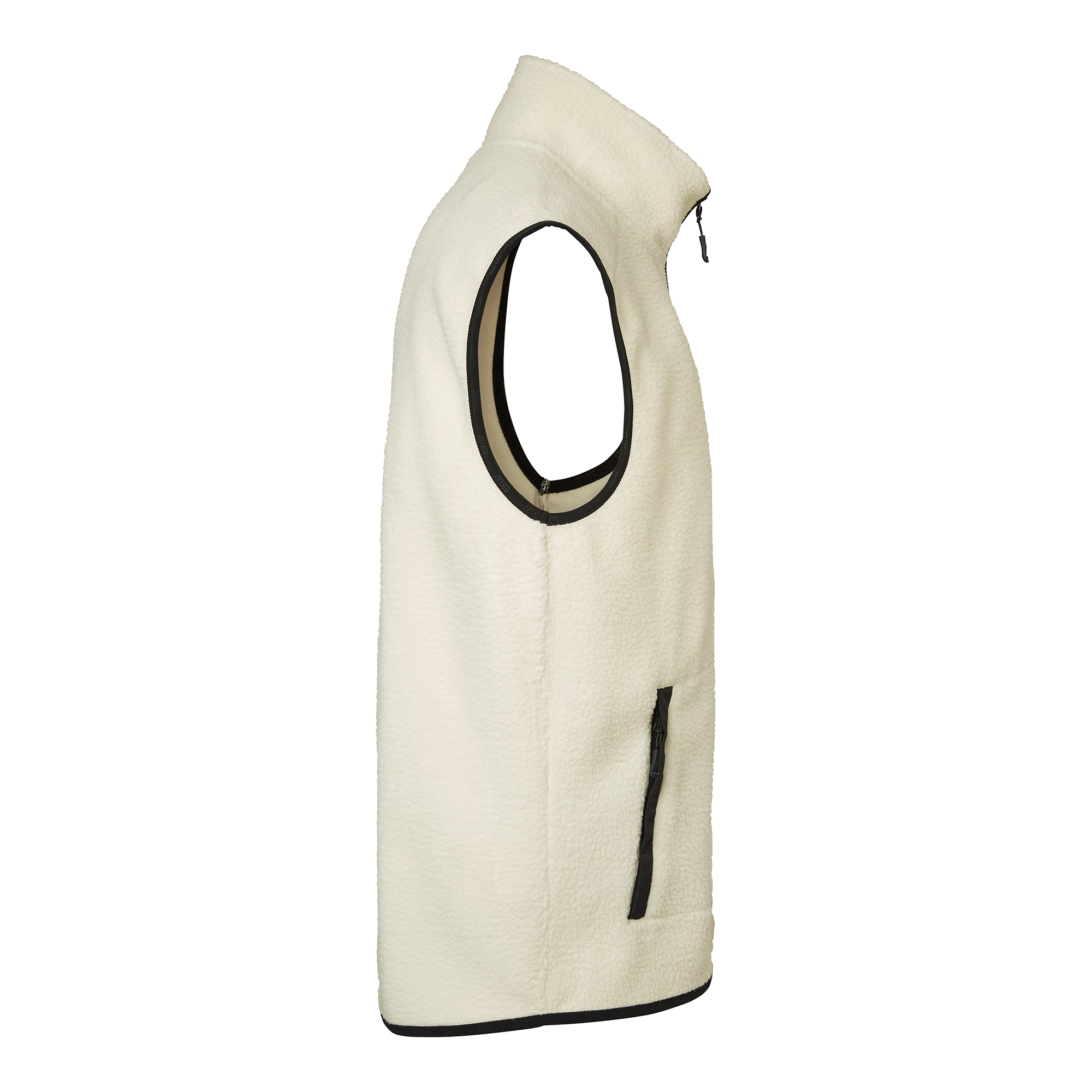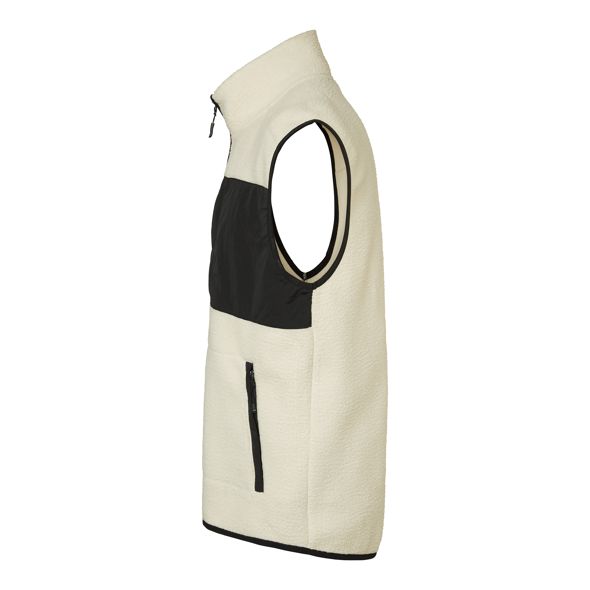 Sherpa-fleeceväst med mjuk insida och fluffig utsida. Utrustad med två sidofickor, stolpfickor och en bröstficka med dragkedja. Svarta vävda partier, rundad nederkant baktill och diskret SW-band i plaggslut.