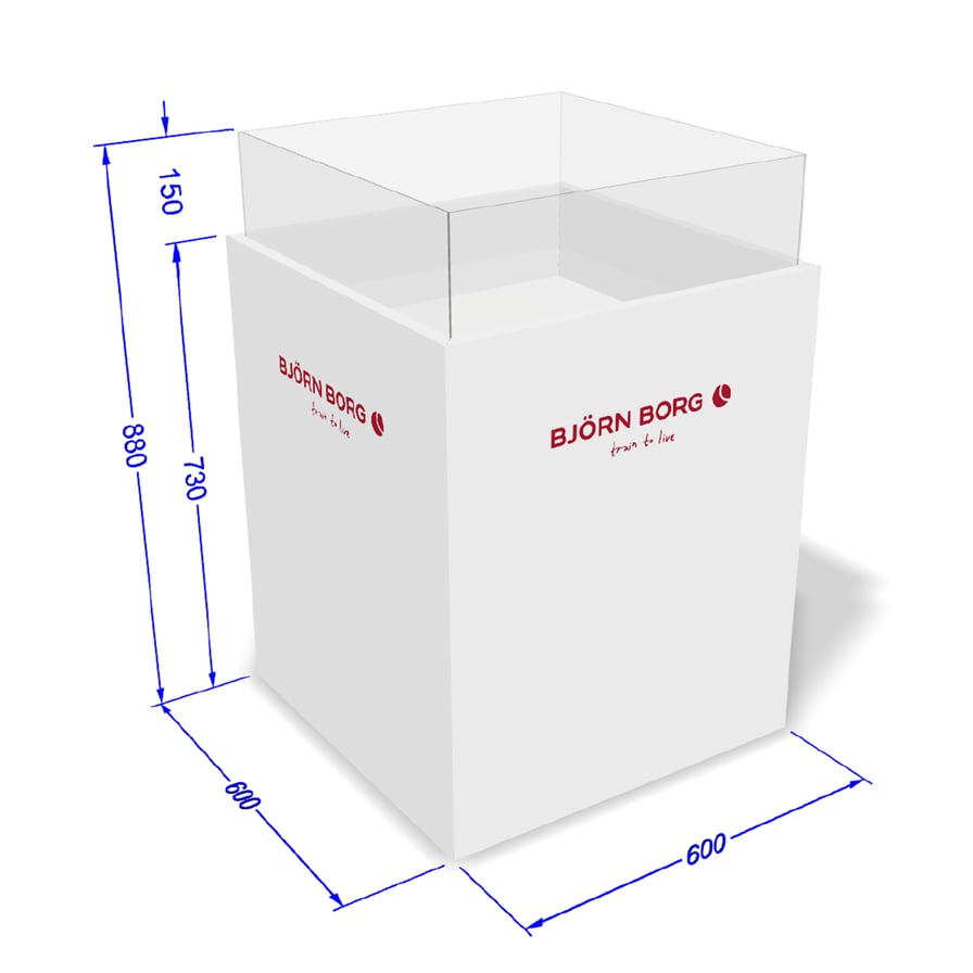 Displaymaterial för strumpor från Björn Borg, ett snyggt sätt att presentera i butik.W 60 x D 60 x H 88 cmUtan kostnad vid köp av 80 par strumpor, kontakta din säljare för mer information.