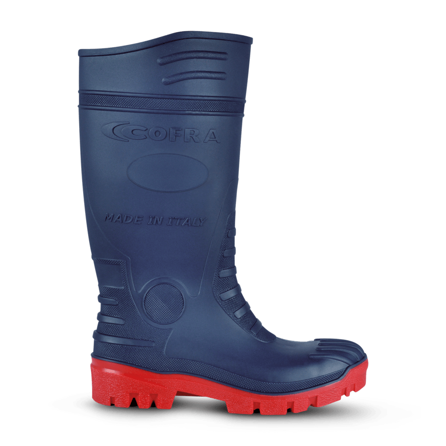 Cofra Typhoon Safety Boot är en gummistövel med stålhätta och spikskydd. Den har en nitrilgummisula och en uttagbar iläggssula som absorberar och transporterar bort fukt för ökad komfort.