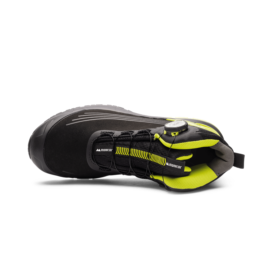 Upplev nästa generations arbetsskor. ICE Evolution Vision från Monitor är den ultimata skyddsskon designad för att erbjuda maximal komfort och säkerhet. Skon är utrustad med ett NFC-chip från Quin som kan bland annat lagra viktig information om blodgrupp och kontaktuppgifter till anhöriga. Med oberoende mobiltelefon kan man skanna chippet i skon om man behöver kontakta anhöriga eller ha mer information till räddningstjänst vid en arbetsplatsrelaterad olycka. Skyddsskon har ett unikt Monitor Return sulsystem som består bland annat av TPU stabilisator, uppdaterad innersula i recycle Plus 2.0, mellansula i Super Critical Foam som ger utmärkta dämpnings- och energiåtergivande egenskaper, spikskydd i APT textile samt en yttersula i TPU. Känn dig bekväm hela dagen med ovandel i mikrofiber och Monitors nya Equip Fit passform med en smidig läst som anpassar sig till tåhättan MNTR1 för att förhindra skavsår. Den smarta snörningen med BOA® Fit System L+1 gör det enkelt att justera passformen snabbt och exakt. ICE Evolution Vision S7S är utrustad med ett HDry Bio-membran som lamineras mot ovandelen, vilket innebär att skon är helt vattentät. HDry ‘b5’-membranet innehåller 53 % biobaserat material (majsstärkelse), certifierat av ett ISO/IEC-ackrediterat laboratorium, och bibehåller den högsta nivån av teknisk prestanda.