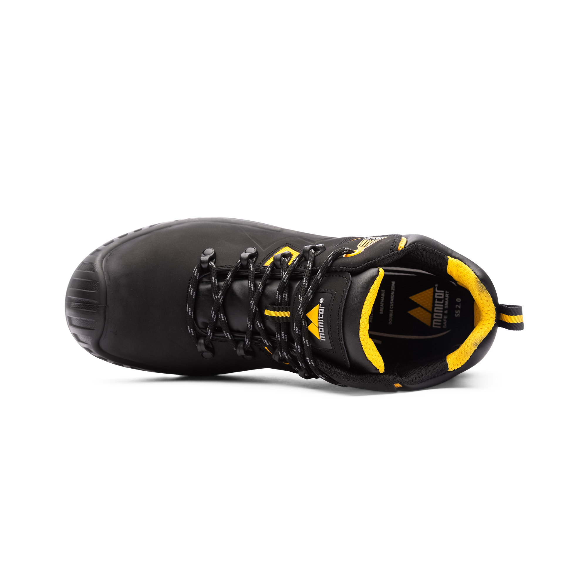 Monitor Midway Safety Boot är en prisvärd halvkänga med ovandel i oljat läder och fukttransporterande textil. Kängan har en komposittåhätta, APT spikskydd och en yttersula i 2-densitets polyuretan för bra dämpning.