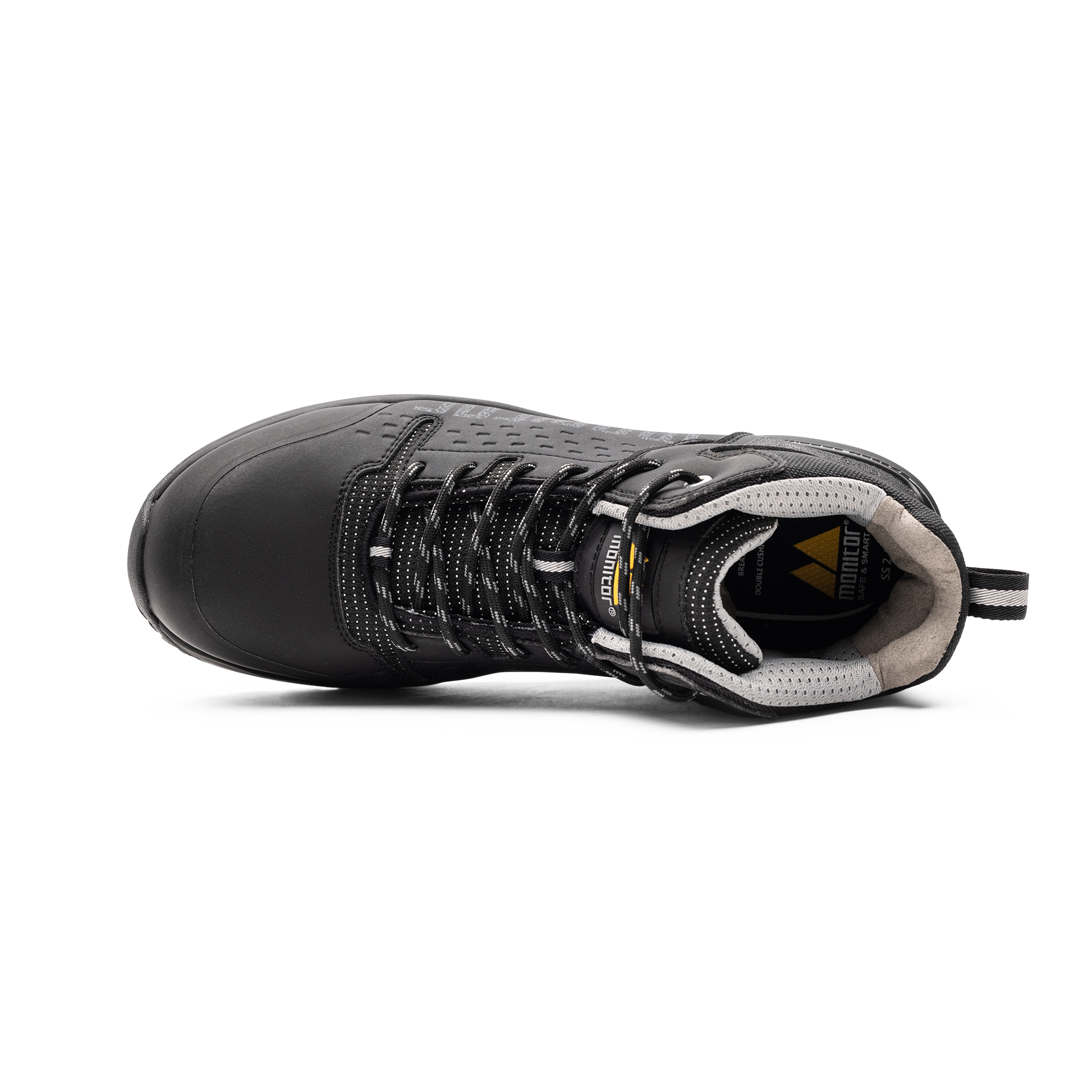 Monitor S.W.A.T. Safety Boot är en S3-halvkänga med ovandel i mikrofiber och textil, samt en tunn TPU-nosförstärkning. Kängan har en komposittåhätta, mjukt APT spikskydd och en yttersula i EVA och gummi.