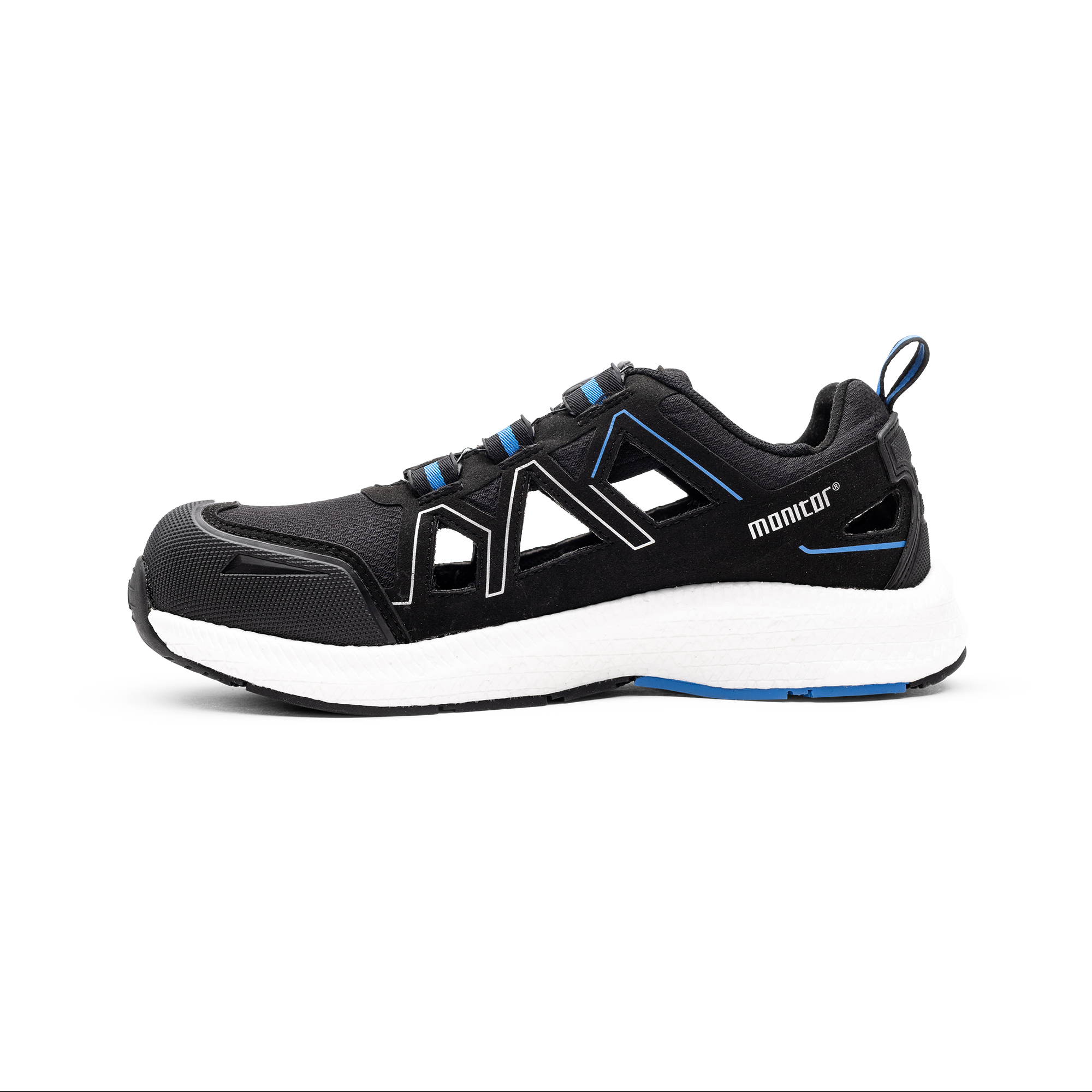 Monitor Paradox R Safety Sandal är en lätt och luftig skyddssandal med textilovandel och väl tilltagna öppna fält. Sandalen har en aluminiumtåhätta, Pantzar APT spikskydd och en yttersula i halksäkert nitrilgummi och expanderad termoplastisk polyuretan. Med BOA® Fit System.