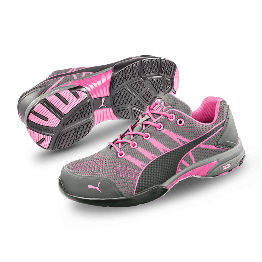 Upptäck Celerity Knit Pink Safety Shoe w, en sportig och bekväm skyddssko från PUMA® som kombinerar enastående design och avancerad teknik för optimal säkerhet och komfort i arbetsmiljöer. Denna skyddssko har en ovandel av SAFETY KNIT, en ultraflexibel textil som formar sig efter foten likt en strumpa, vilket ger överlägsen komfort. Skons insida är fukttransporterande och håller dina fötter svala och torra under hela arbetsdagen. Celerity Knit Pink Safety Shoe w är utrustad med en stålhätta som skyddar mot stötar och tunga föremål, samt en anatomisk iläggssula som bidrar till att hålla foten sval och torr. För att ge extra stöd och förhindra snedvridning av foten är skon utrustad med en stabiliserande gelänk av TPU. Mellansulan är tillverkad av ultralätt EVA, vilket ger optimal stötdämpning och komfort. Sulan är dessutom utrustad med IQ.CELL i hälen, en gel pad som absorberar stötar och returnerar energi för ökad komfort. Den värmebeständiga gummisulan, baserad på PUMA senaste löpteknologi, har en profil med diagonala spår som garanterar perfekt flexibilitet och säker kontakt med marken. Celerity Knit Pink Safety Shoe w är idealisk för kvinnor som arbetar inom bygg, industri och andra sektorer där både säkerhet och komfort är avgörande. Välj Celerity Knit Pink Safety Shoe w för att säkerställa optimalt skydd och komfort under hela din arbetsdag.