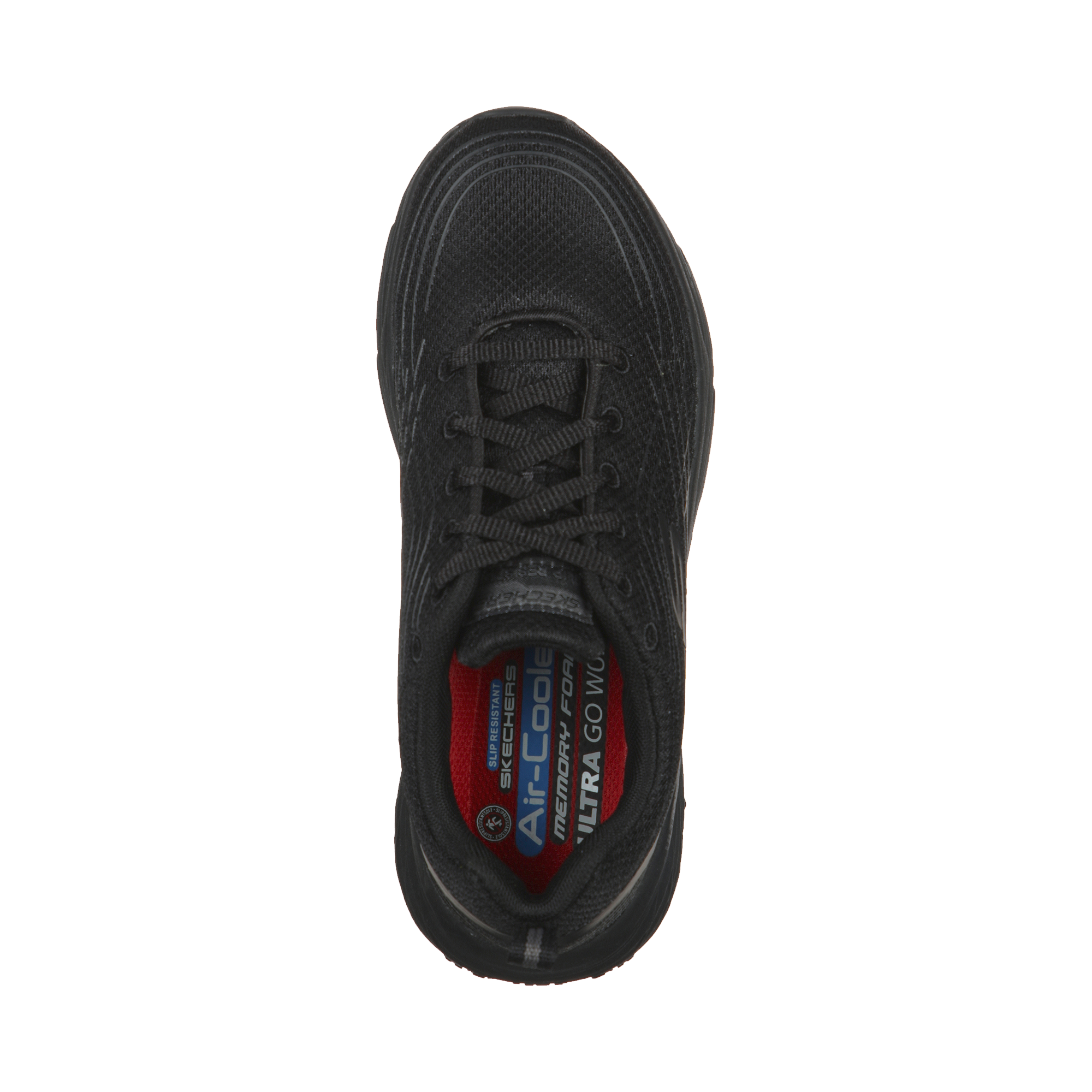 Max Cushioning Work Shoe har en ovandel i mesh och svarta detaljer. Skechers Air cooled Memory Foam innersula ger en bra dämpning. Max cushioning mellansula är framtagen för bästa komfort och en halkfri yttersula gör detta till en bra arbetssko. Test