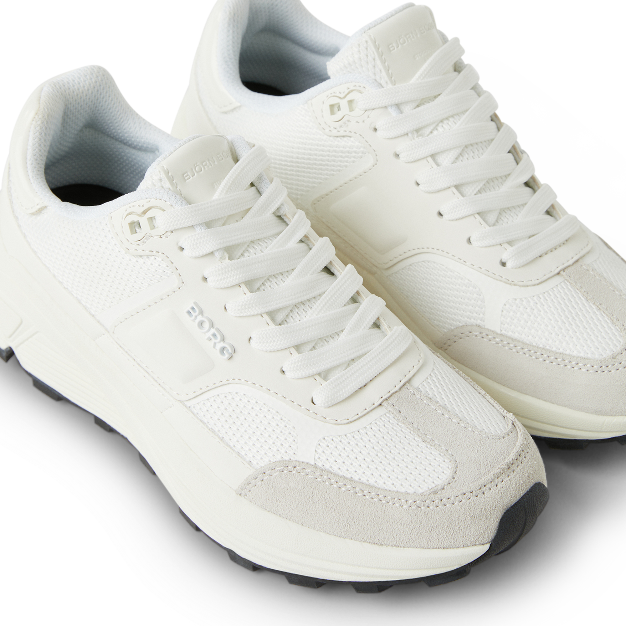 Björn Borg R1300 är en allsidig sko som kombinerar stil och komfort. Ovandelen i textil-mesh och syntetläder kompletteras av en robust sula och en Borg-logotyp i metall, vilket ger en trendig look. Den tjocka lättviktsgummisulan erbjuder utmärkt grepp, och den löstagbara innersulan gör skötseln enkel.