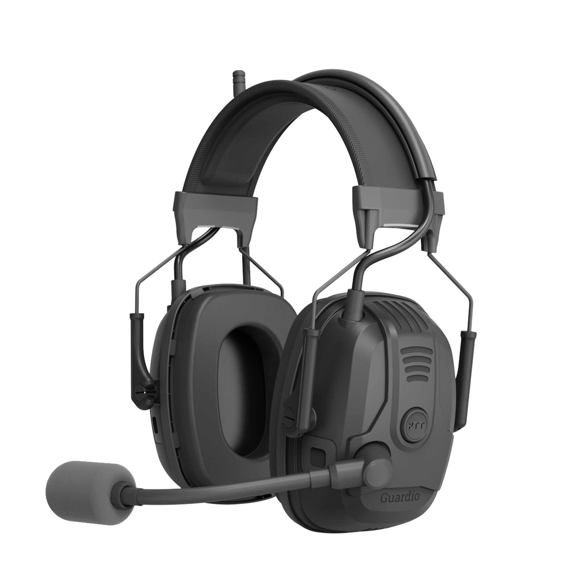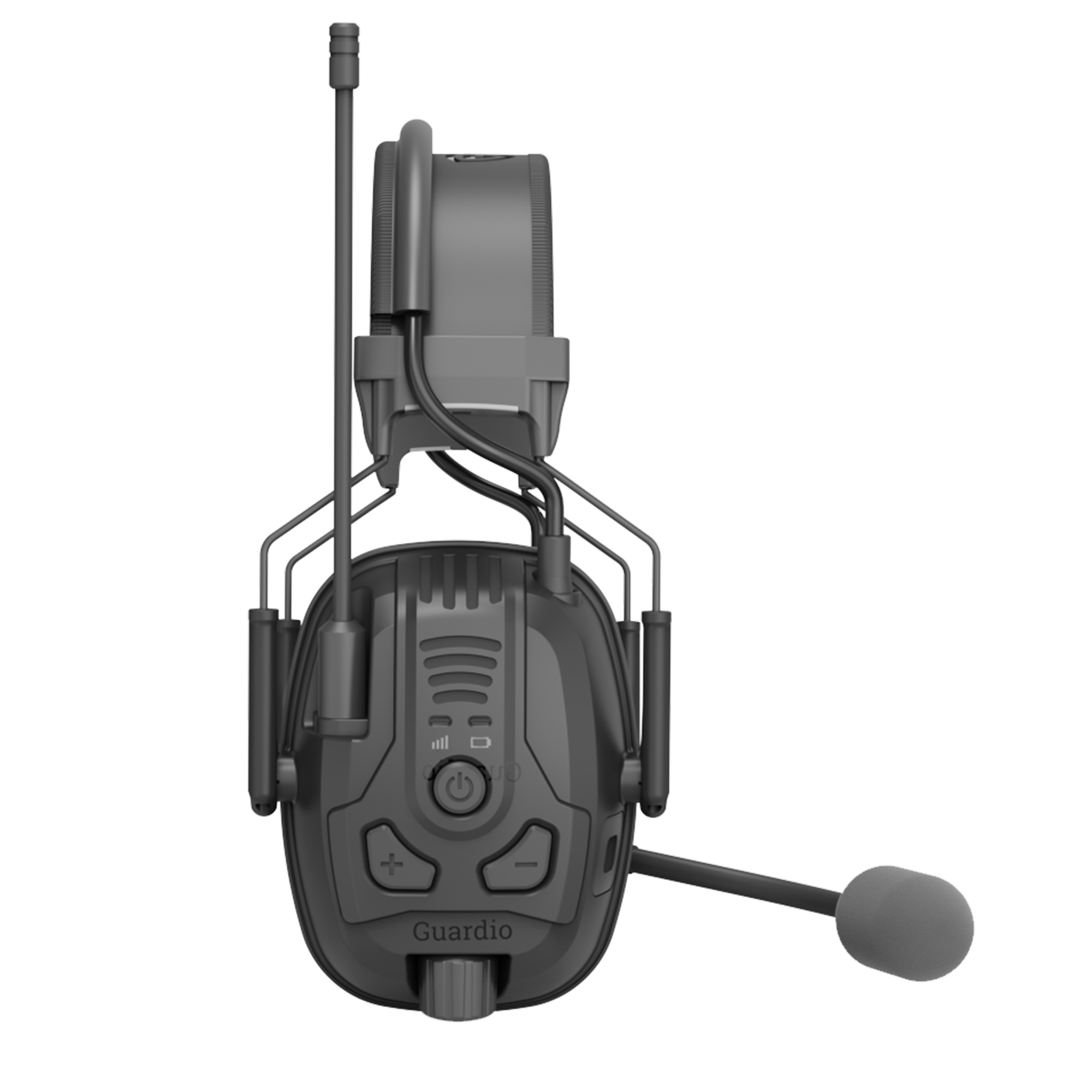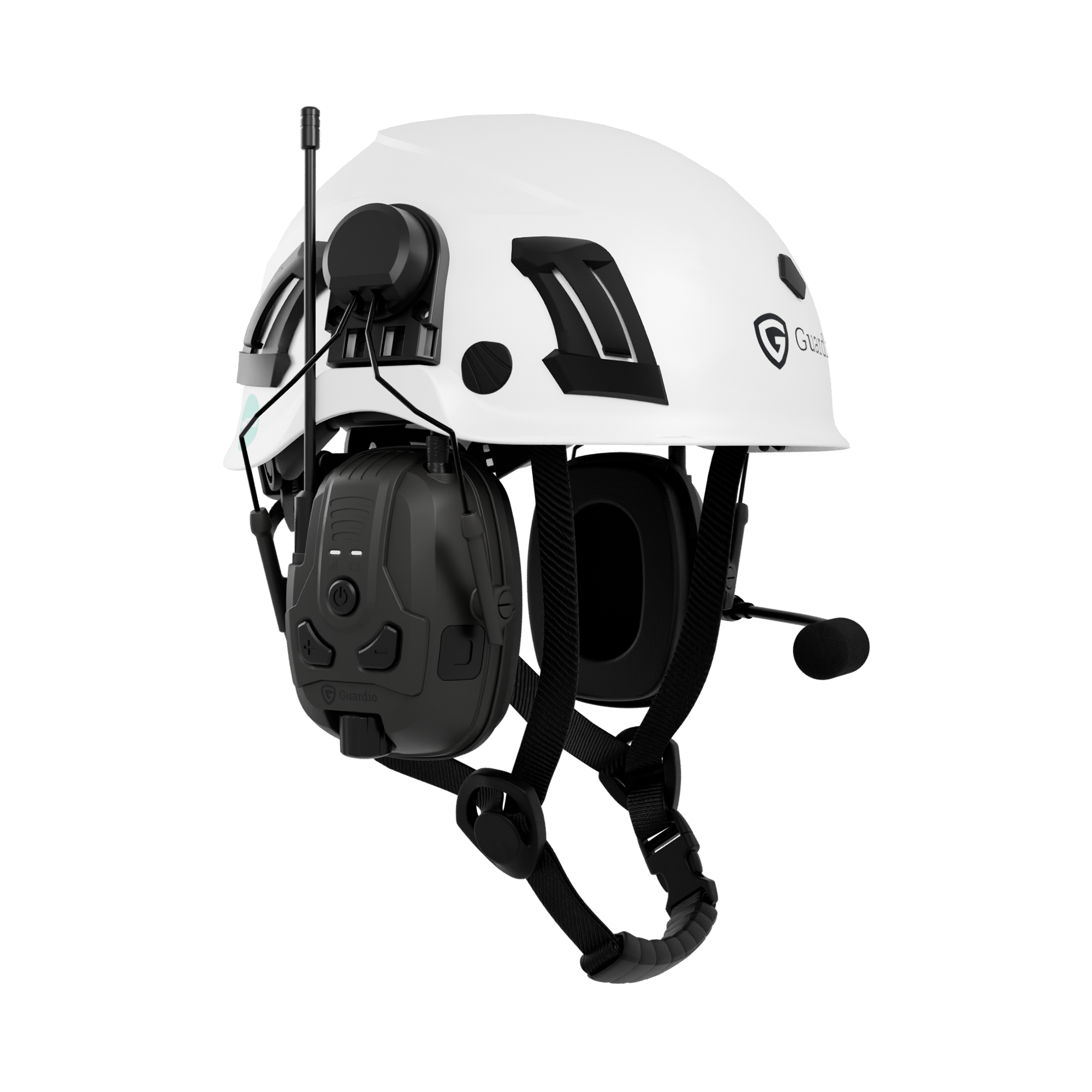 Guardio Freebird COM hörselskydd med brusreducerande bommikrofon, talförbättringsteknologi, och 16 kanaler i PMR446MHz. Enkel omställning mellan hjässbygel och hjälmfäste.