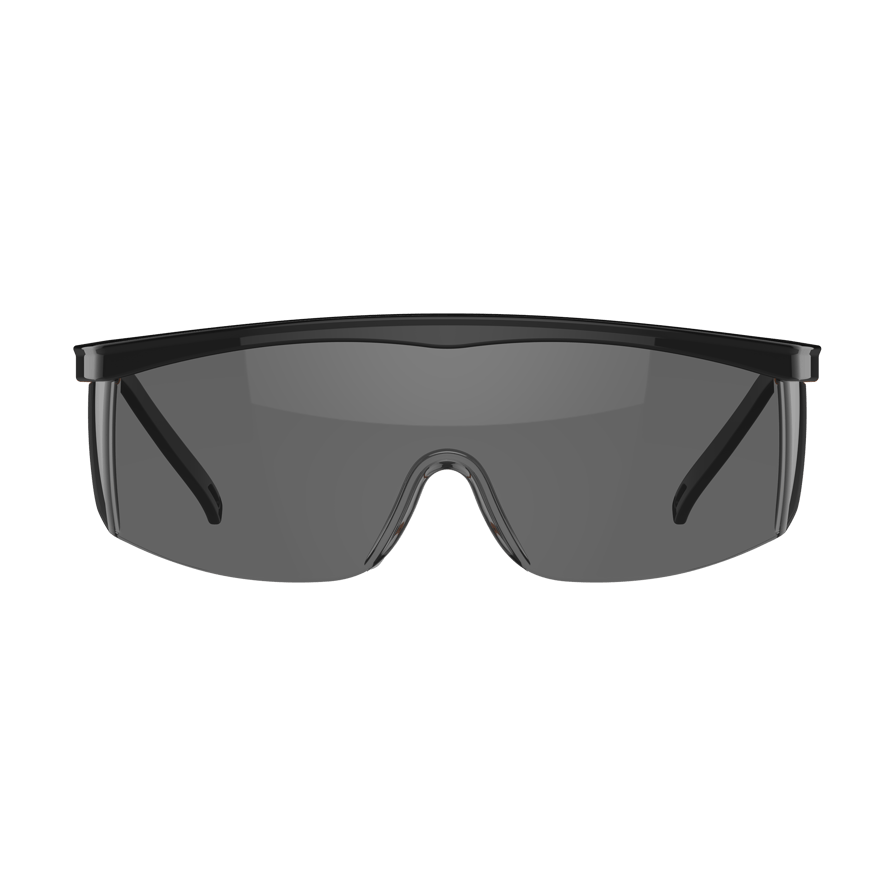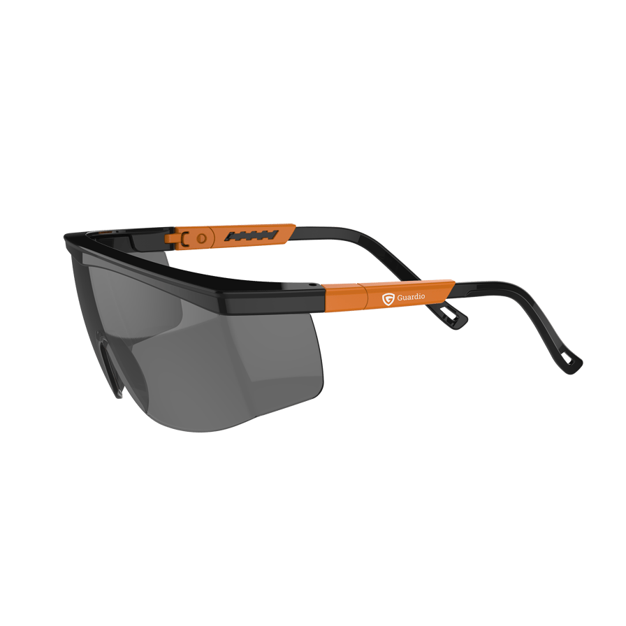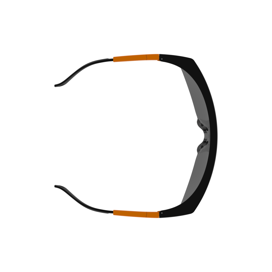 Skyddsglasögon som kan bäras över receptglasögon, tillverkade i biobaserad plast. Justerbara skalmar för perfekt passform.