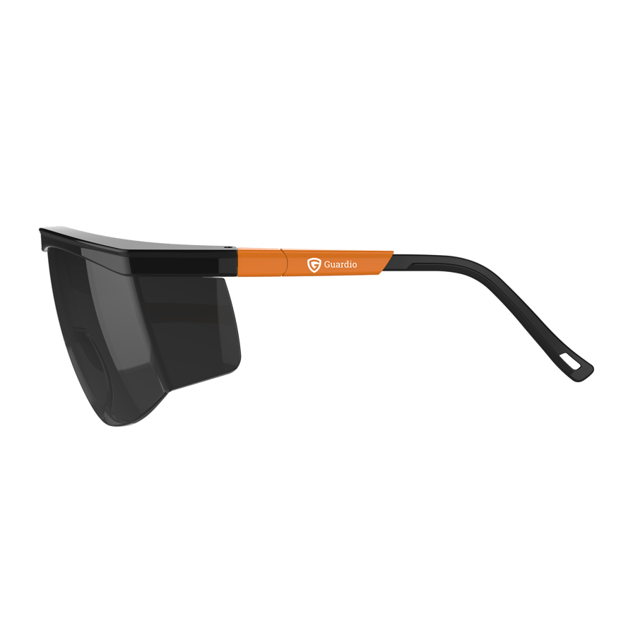 Skyddsglasögon som kan bäras över receptglasögon, tillverkade i biobaserad plast. Justerbara skalmar för perfekt passform.