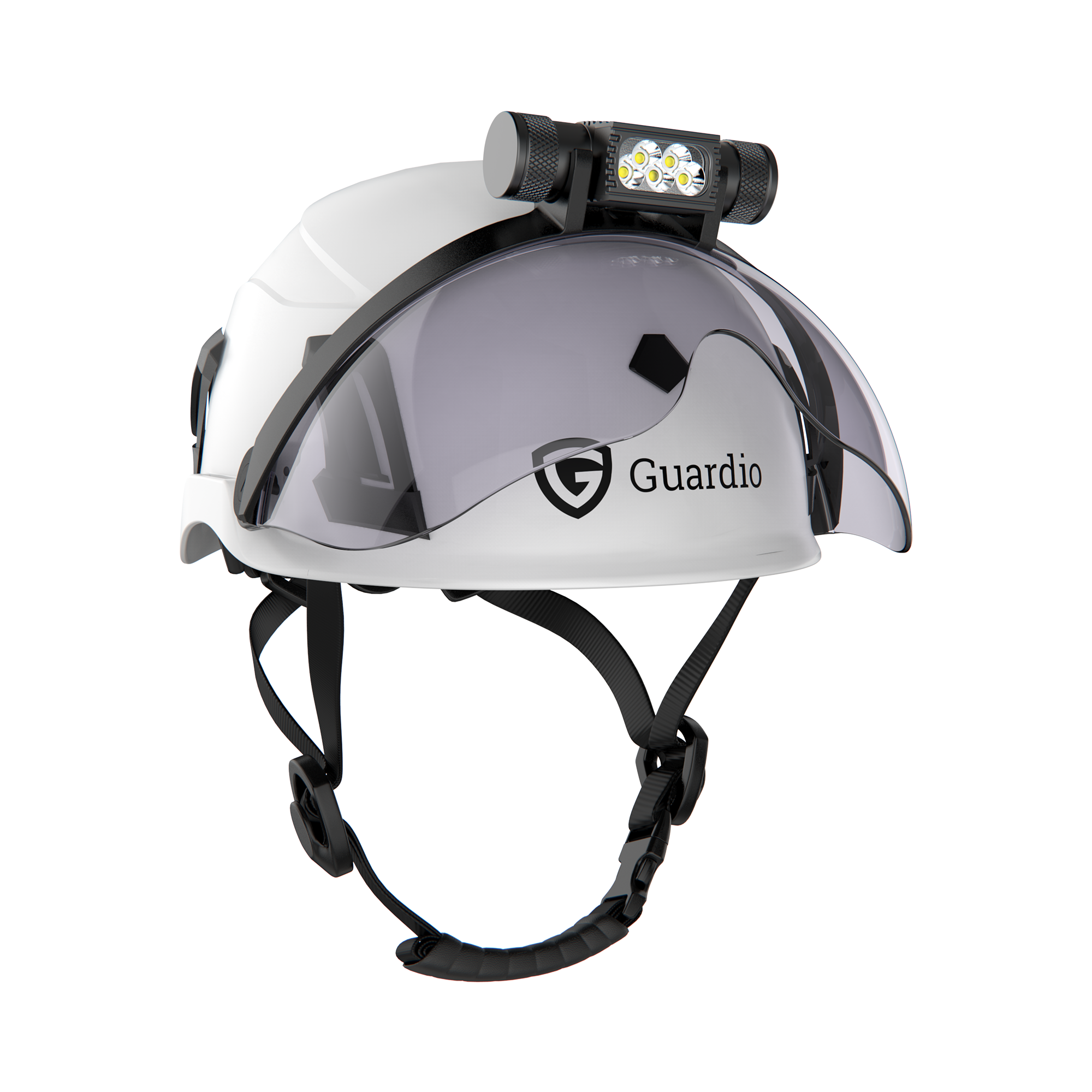 Guardio VisorFlex pannlampa med fem ljuslägen. Lätt design, justerbar med hjälmvisir, lång räckvidd. Batteritid som räcker för långa arbetspass. Pannband för Visorflex-lampan följer med, vilket innebär att lampan kan användas utan hjälm.