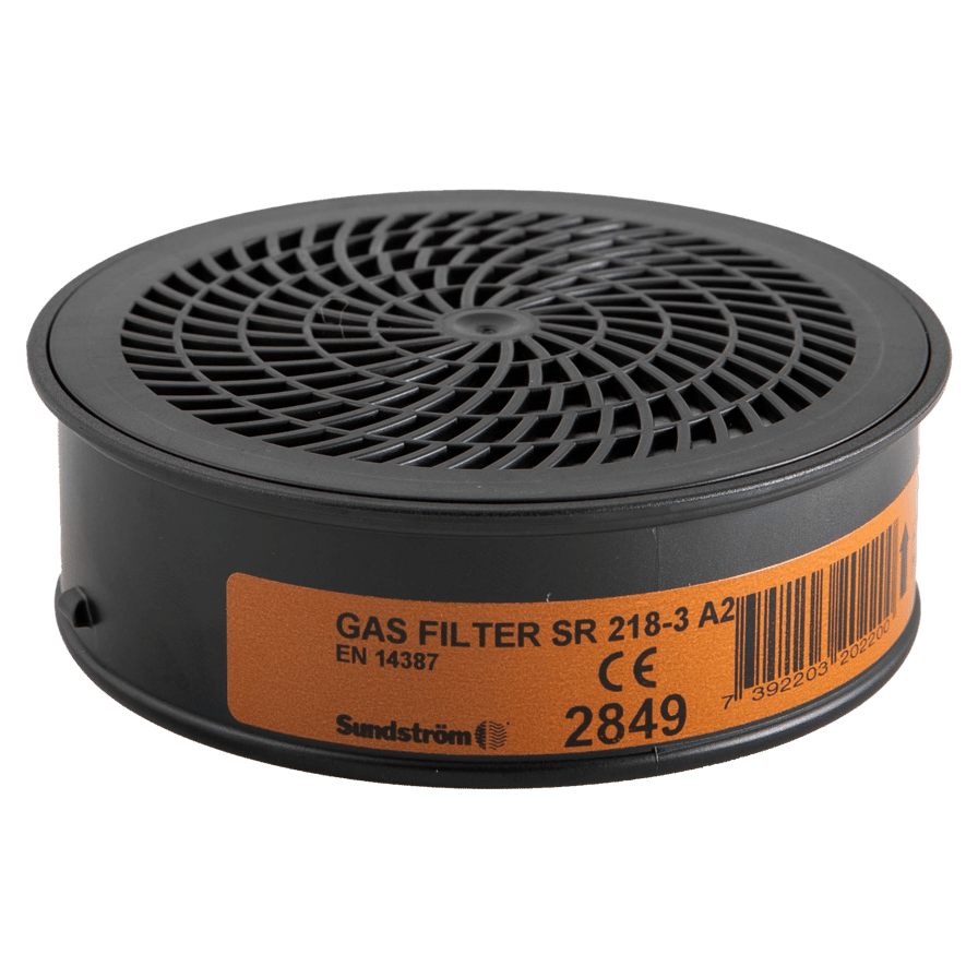 Gasfilter SR 218, klass 2 är avsedd för användning tillsammans med Sundströms halv- och helmasker. Filtret är typ A och skyddar mot organiska gaser och ångor, t ex lösningsmedel, vars kokpunkt överstiger +65 °C. Gasfiltret kan enkelt kombineras med partikelfilter SR 510 P3 R, för att erhålla skydd även mot aerosoler (partiklar), t ex vid sprutmålning.