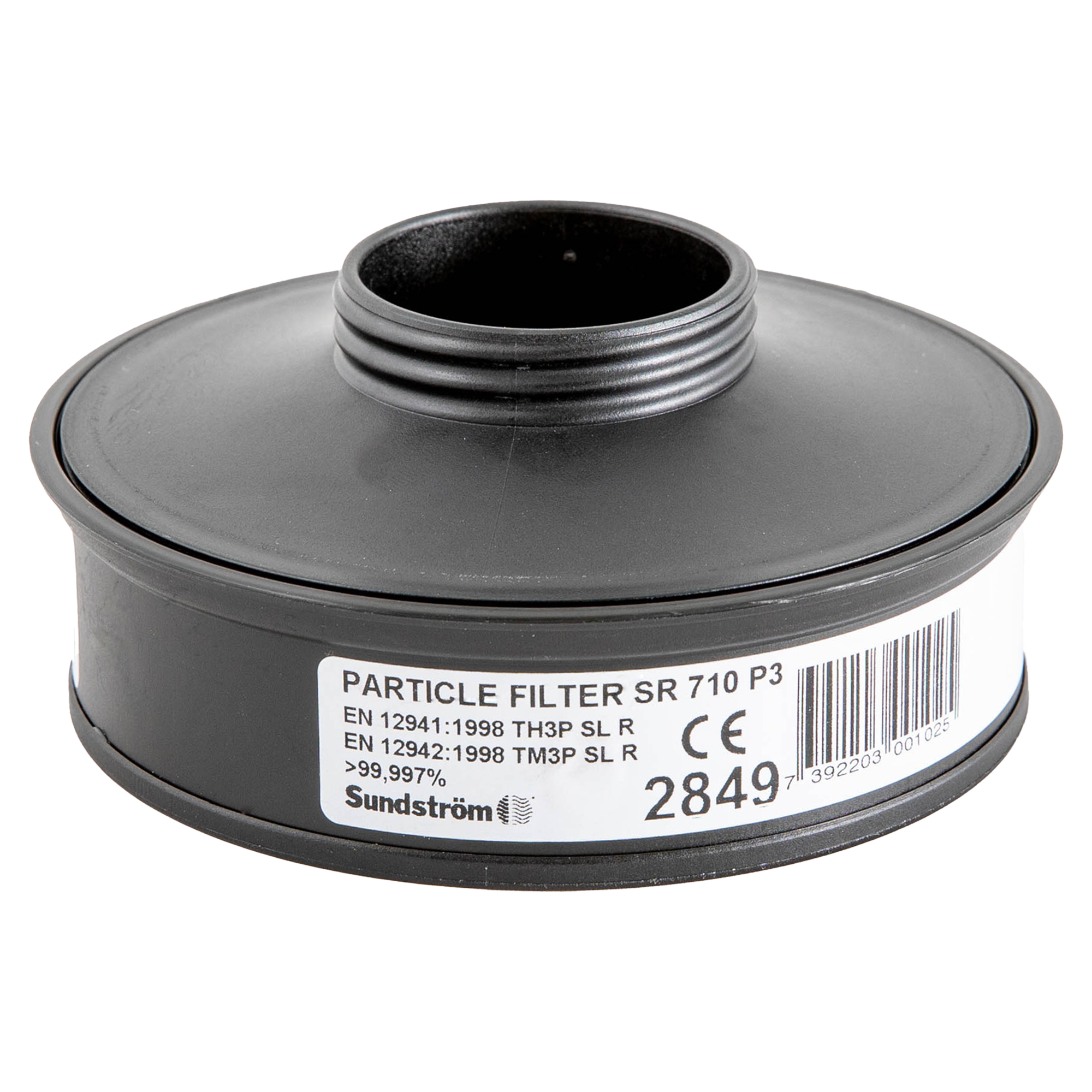 Partikelfilter SR 710 är försett med specialgänga och avsett för användning i Sundströms batteridrivna fläkt SR 500/SR 500 EX/SR 700 som separat partikelfilter, dvs det kan inte kombineras med gasfilter. Filtret är av typ P3 R* och skyddar mot alla typer av partikelformiga föroreningar. Vid behov av kombinationsfilter till fläkt SR 500/SR 500 EX ska gasfiltret kombineras med partikelfilter SR 510. Filtret bör kombineras med förfilter SR 221 för att öka livslängden. * R (Re-useable): Filtret kan användas under fler än ett arbetsskift.