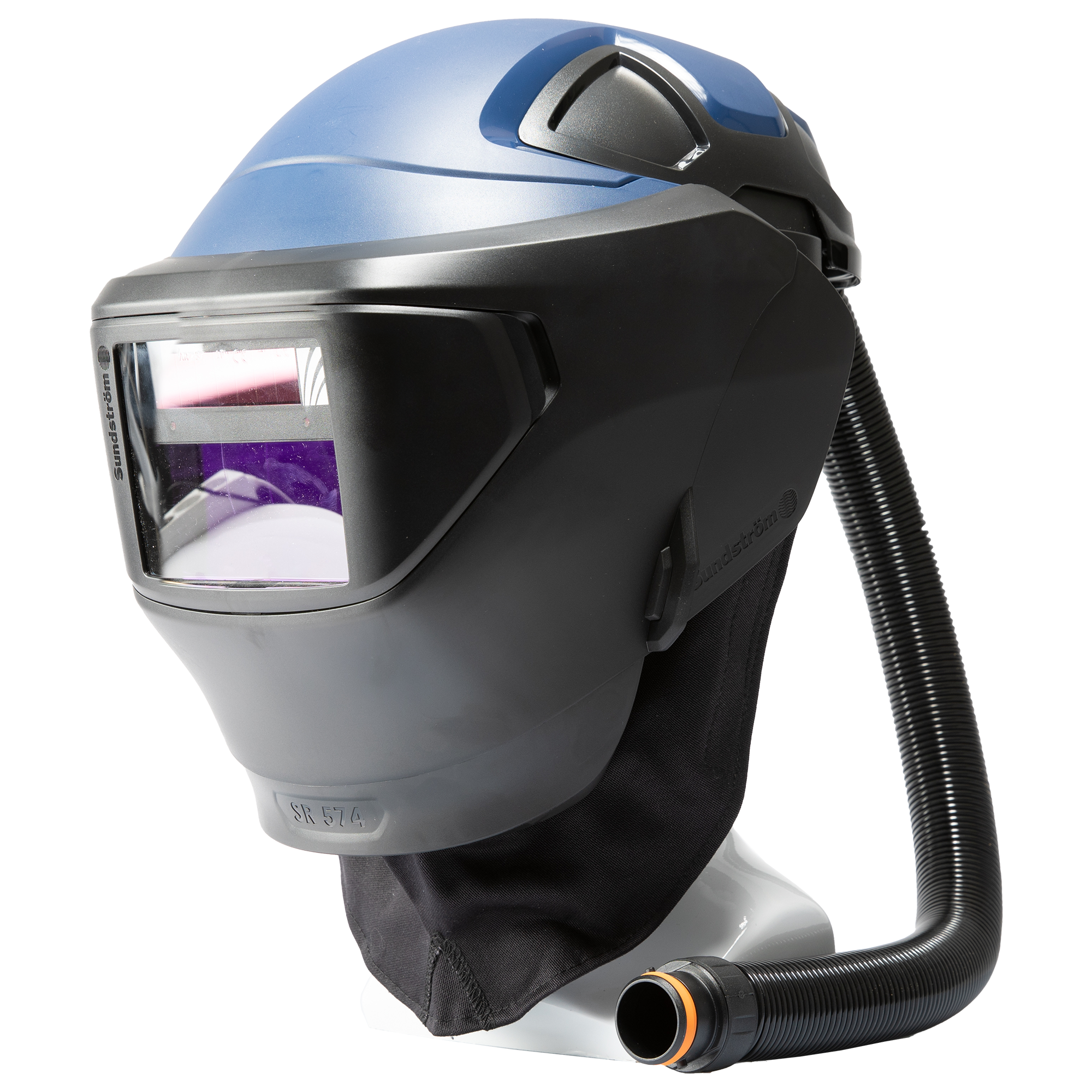 Svetsvisir SR 574 är avsedd att användas tillsammans med Sundströms skärm SR 570. Skärm med svetsvisir tillsammans med den batteridrivna fläkten SR 500 eller SR 700 och godkända filter ingår i Sundströms fläktassisterade andningsskyddssystem. Skärmens andningsslang ansluts till den filterförsedda fläkten. Övertrycket i skärmen förhindrar partiklar och andra föroreningar att komma in i andningszonen. Produkterna kan också användas tillsammans med trycklufttillsats SR 507. Denna kombination utgör en andningsapparat med kontinuerligt luftflöde för anslutning till tryckluft. Se separat produktblad SR 507. Kombinationerna skyddar mot skadliga gaser/partiklar, strålning och stänk vid svetsning, skärbränning, slipning och liknande arbeten. Utformningen gör de användbara vid arbeten i trånga och svåråtkomliga utrymmen. Utrustningarna kan användas som alternativ till filterskydd i alla situationer där sådana rekommenderas. Detta gäller i synnerhet vid tunga, varma eller långvariga arbeten. Före användning ska ett svetsglas med lämplig täthet monteras i svetsvisiret. SR 574 levereras med ett automatiskt svetsglas EN 4/9-13 och skyddsglas i polykarbonat. Glasen ska vara CE-märkta och av standardstorlek 90 x 110 mm. Tillbehör i form av svetsglas, automatiska svetsglas, korrektionsglas, nack- och bröstskydd och slangskydd finns.