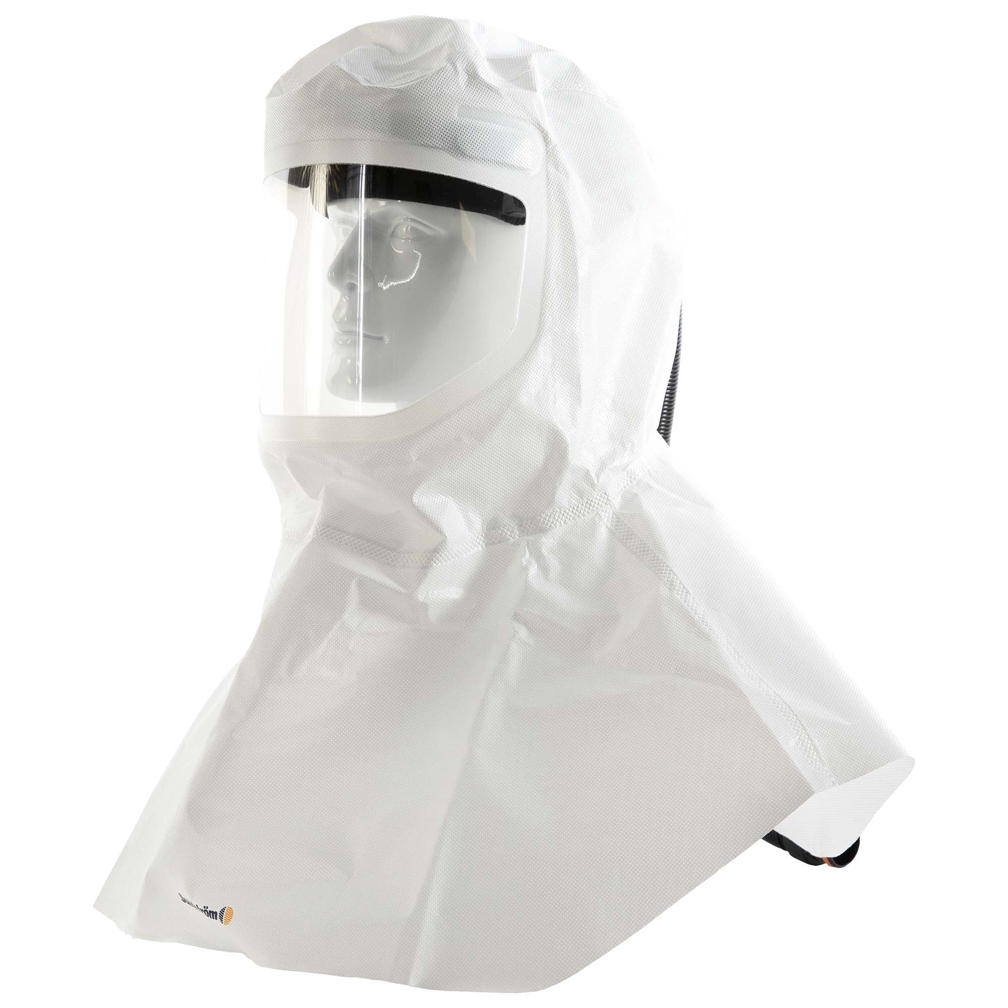 Vårt SR 600-system ger en utmärkt passform med en justerbar huvudställning. Alla våra huvor täcker huvud och axlar tillsammans med ett förstklassigt andningsskydd. Användaren kan använda samma huvudställning och luftkanal med olika huvor för alla behov. Huva SR 601; Tillverkad av ett nonwoven-material och ger ett utmärkt skydd mot partiklar och vätskor.
