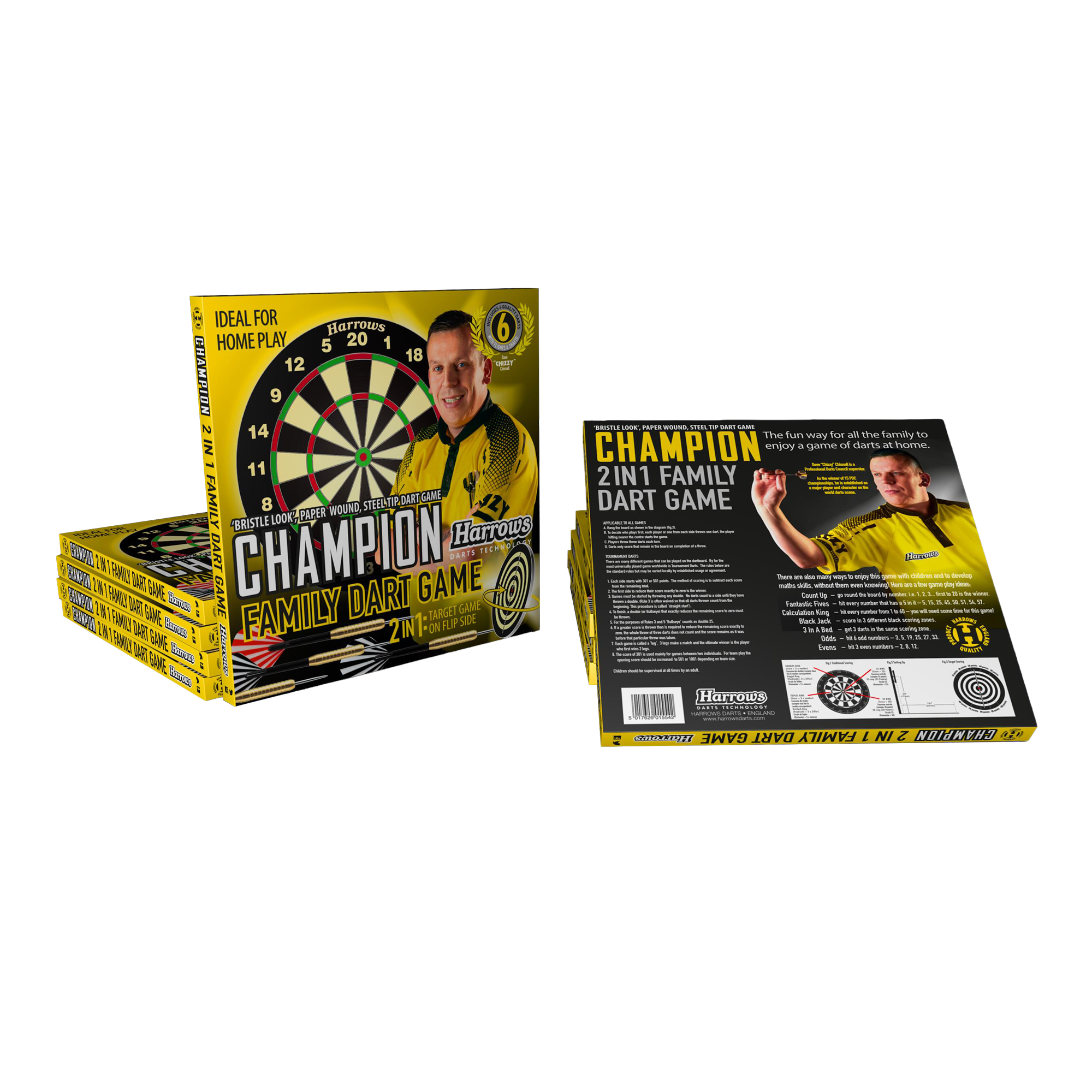 Darttavla i originalstorlek tillverkad av hårt rullad papp. Tavlan har även ett bonusspel på baksidan för variation. Två set mässingspilar på 18 g ingår, vilket gör det enkelt att komma igång direkt. Perfekt för både nybörjare och hemmabruk.