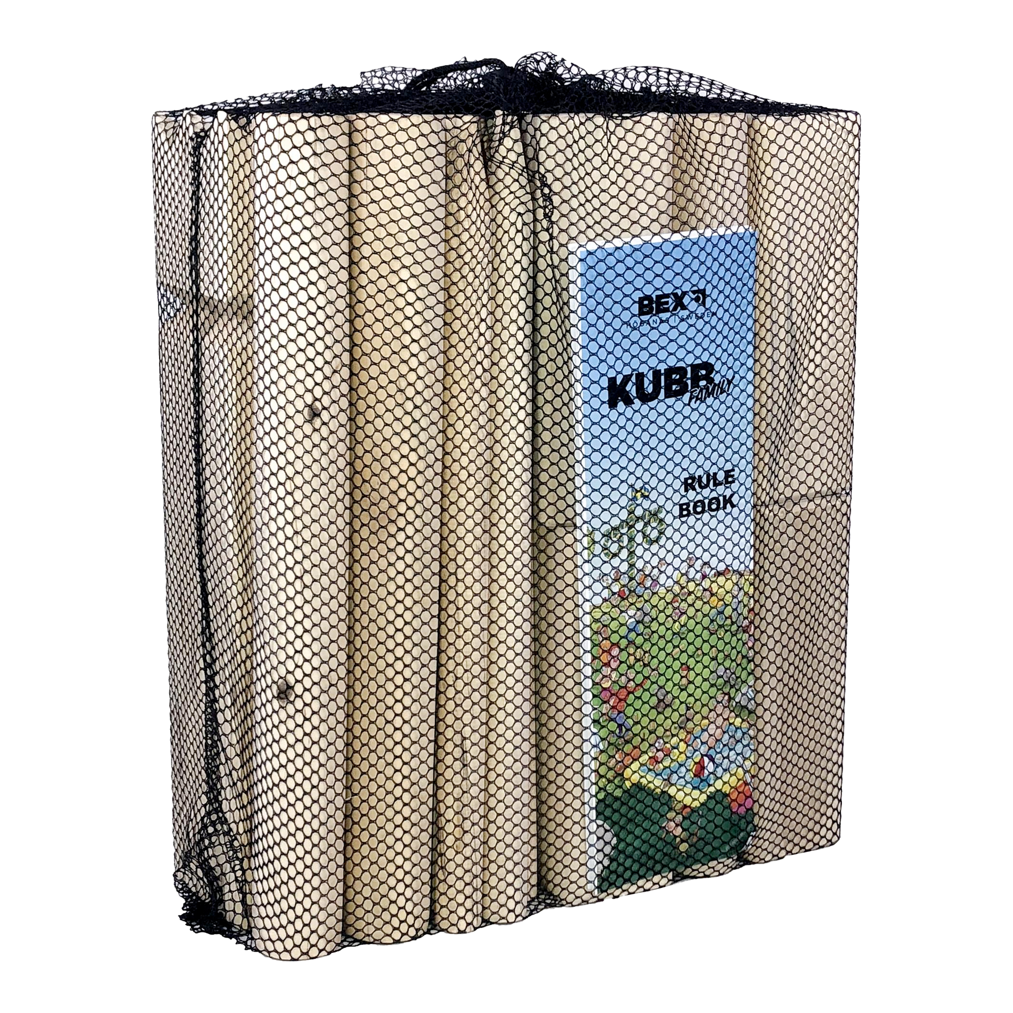 Basic kubbspel i björk – perfekt för nybörjare. Setet innehåller kung, 6 kastpinnar, 10 knektar, 4 markörer, regler och nätpåse för förvaring. Vikt 3,7 kg. Kan målas i olika färger eller behandlas med olja för längre hållbarhet.