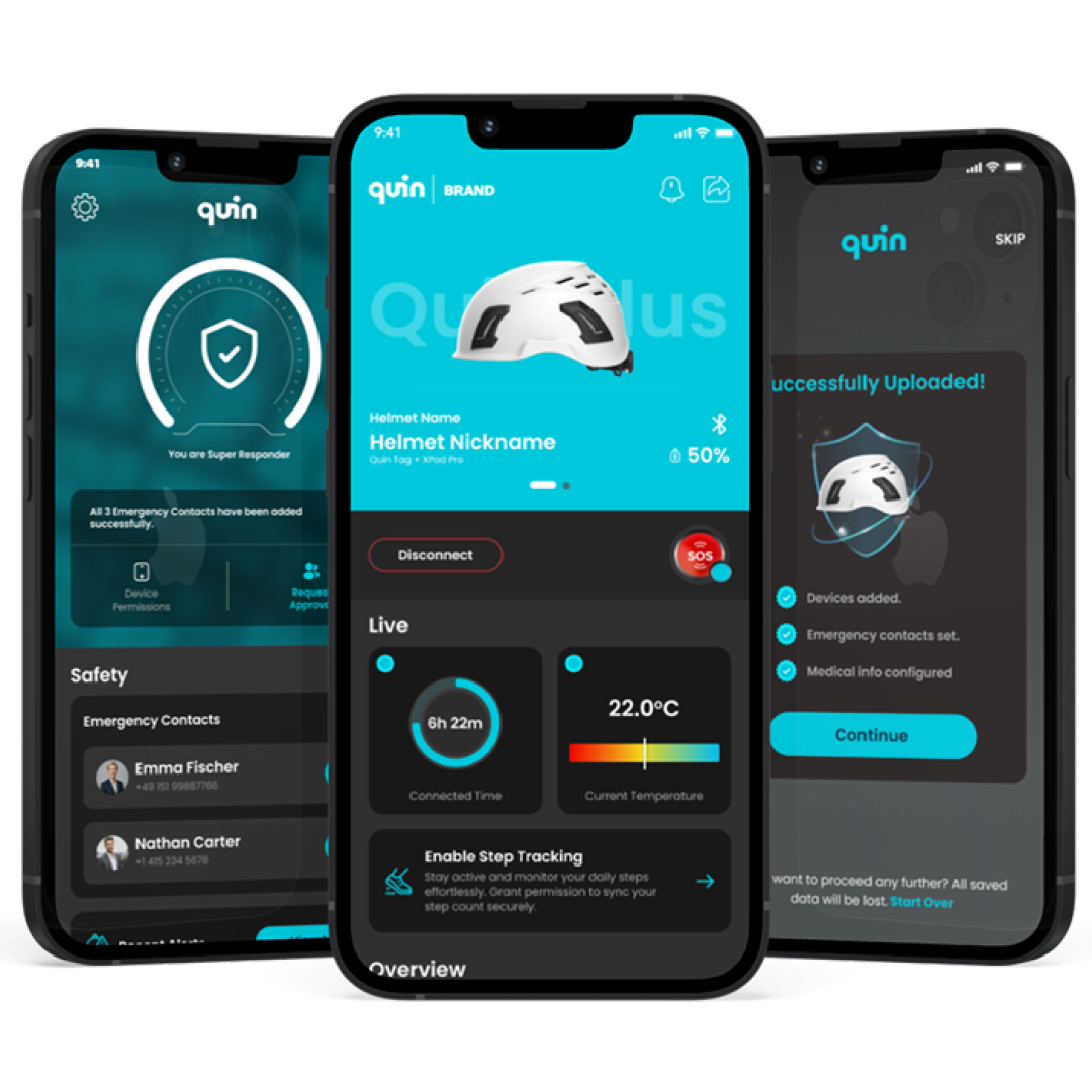 När en kollision eller händelse upptäcks är Quin utformad för att automatiskt varna dina tre valda nödkontakter och ge dem din status och plats i realtid.
