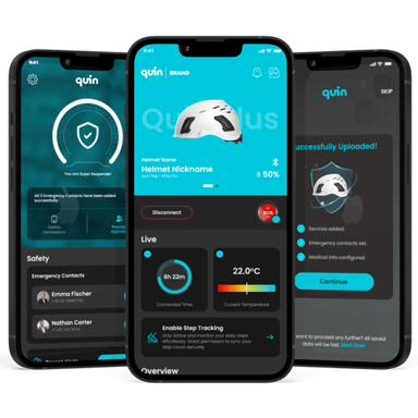 När en kollision eller händelse upptäcks är Quin utformad för att automatiskt varna dina tre valda nödkontakter och ge dem din status och plats i realtid.